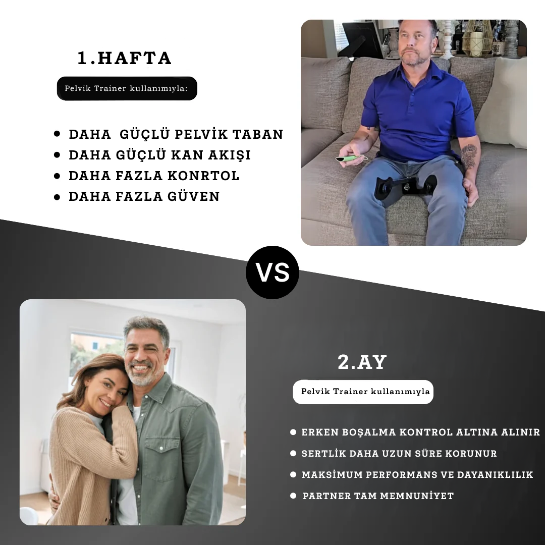Pelvik Trainer’ı düzenli kullanan birçok erkek, kısa sürede kontrol, güç ve dayanıklılık konusunda gözle görülür gelişim yaşadığını bildiriyor.